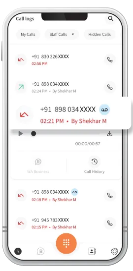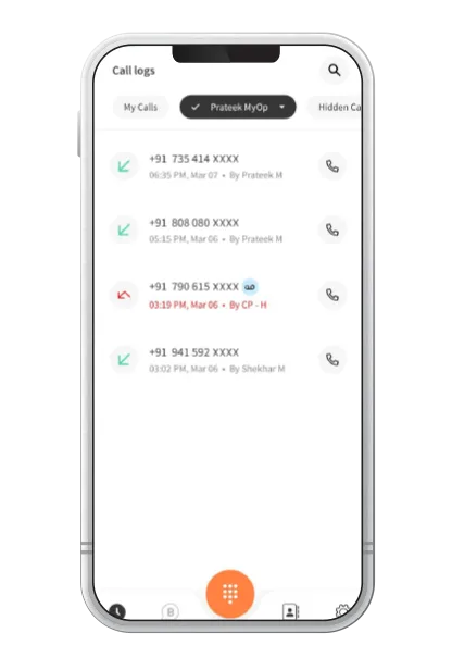 Easily call back your customers after viewing the missed call alert from the main call log section.